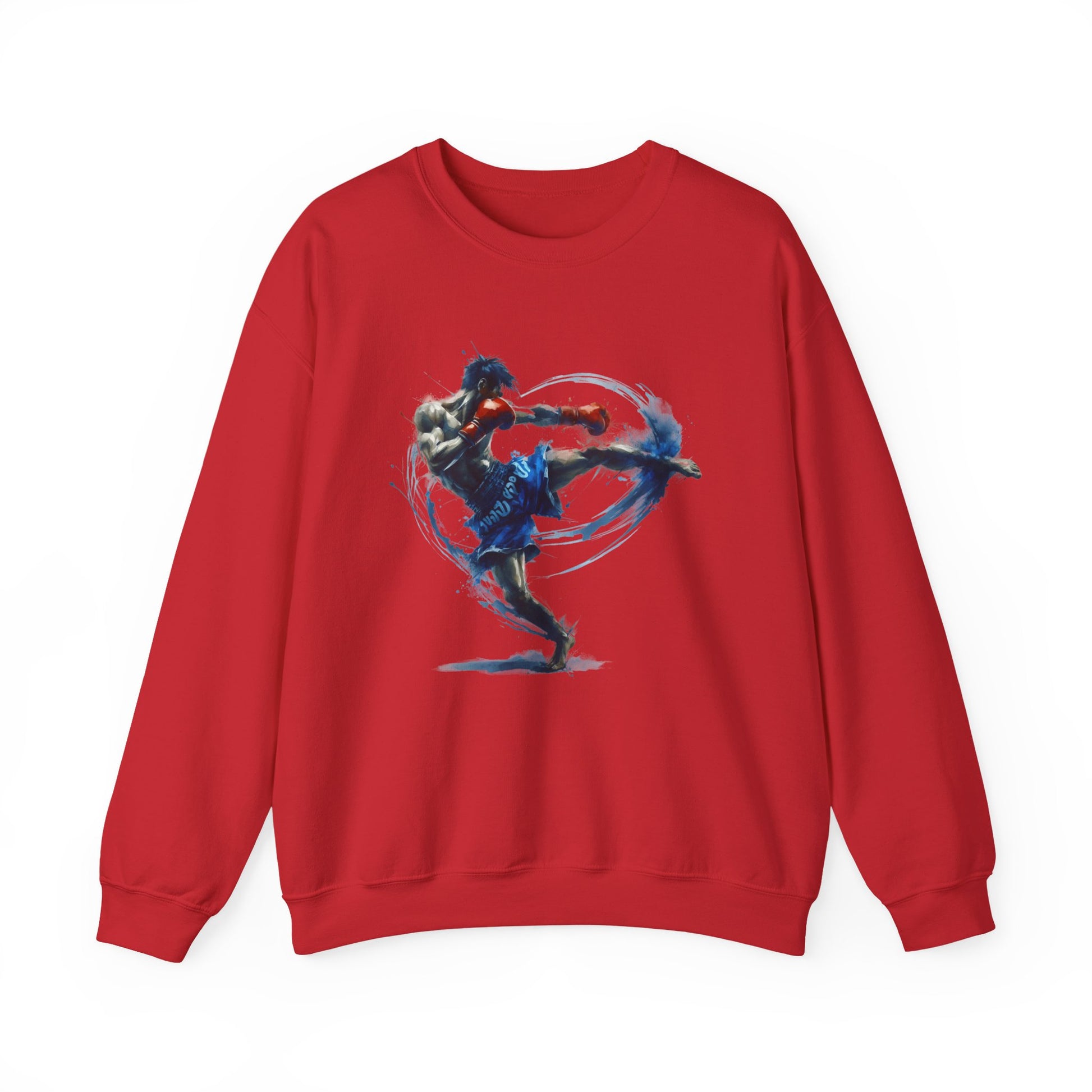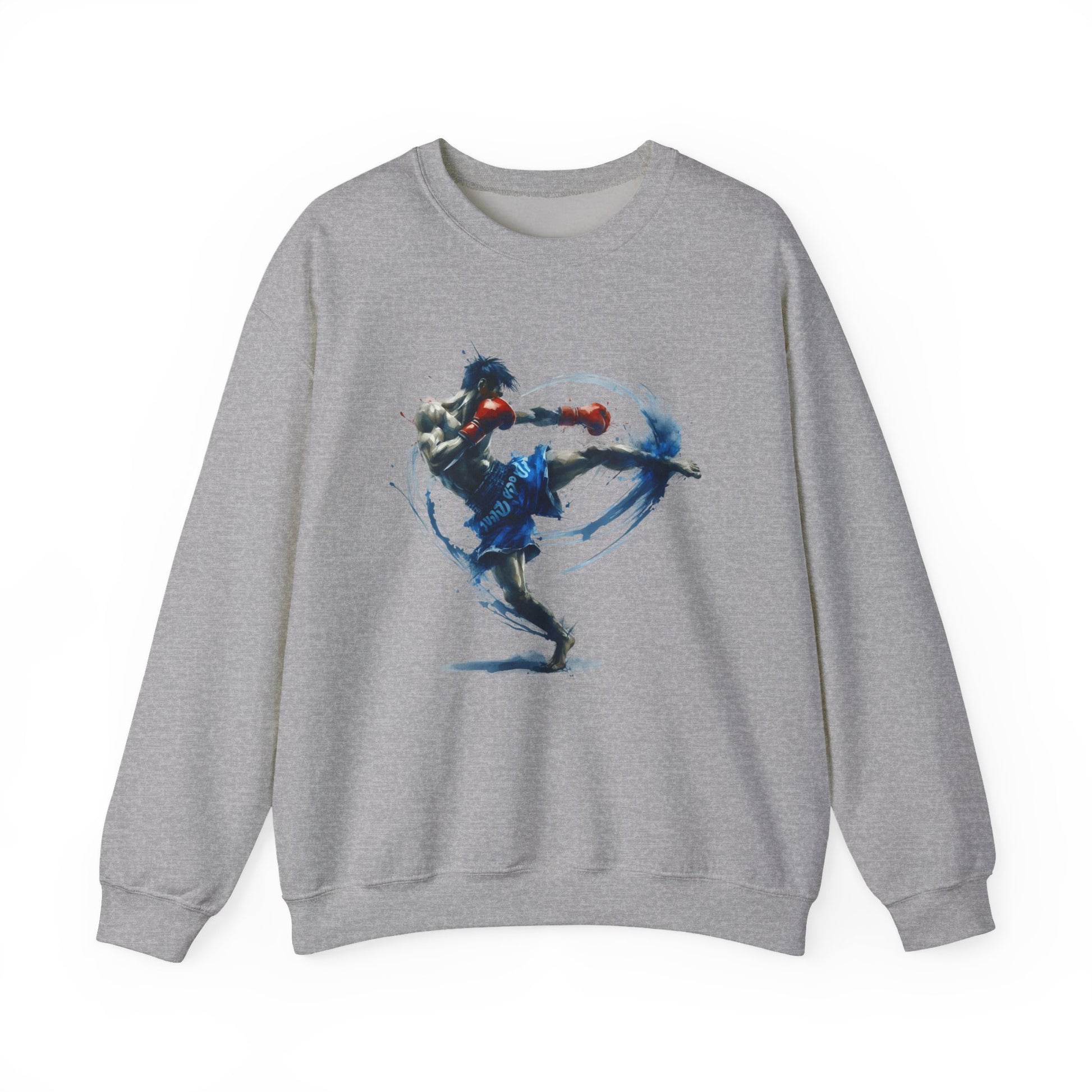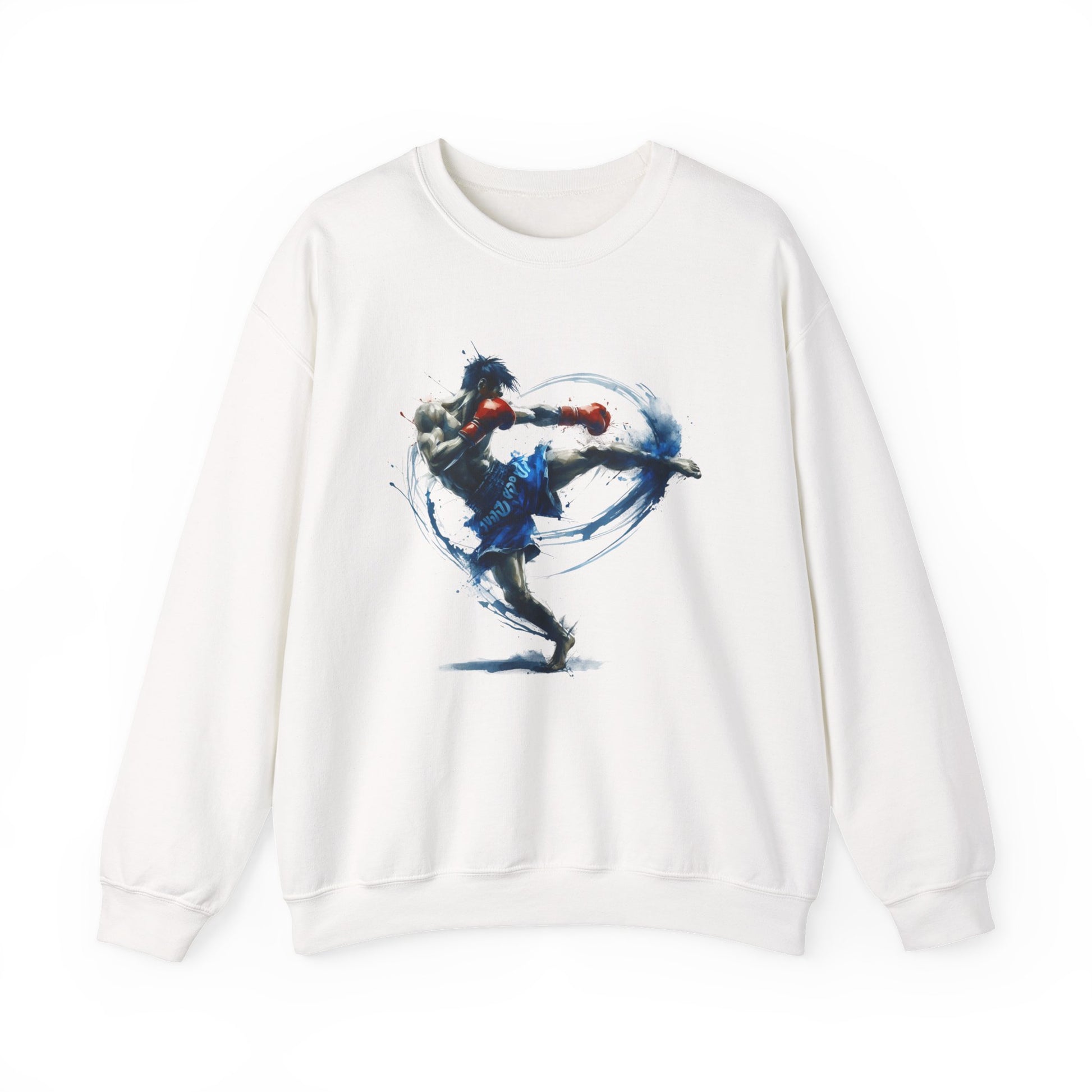 Muay Thai Fighter Crewneck Sweatshirt — Dynamic Watercolor Muay Thai Artwork