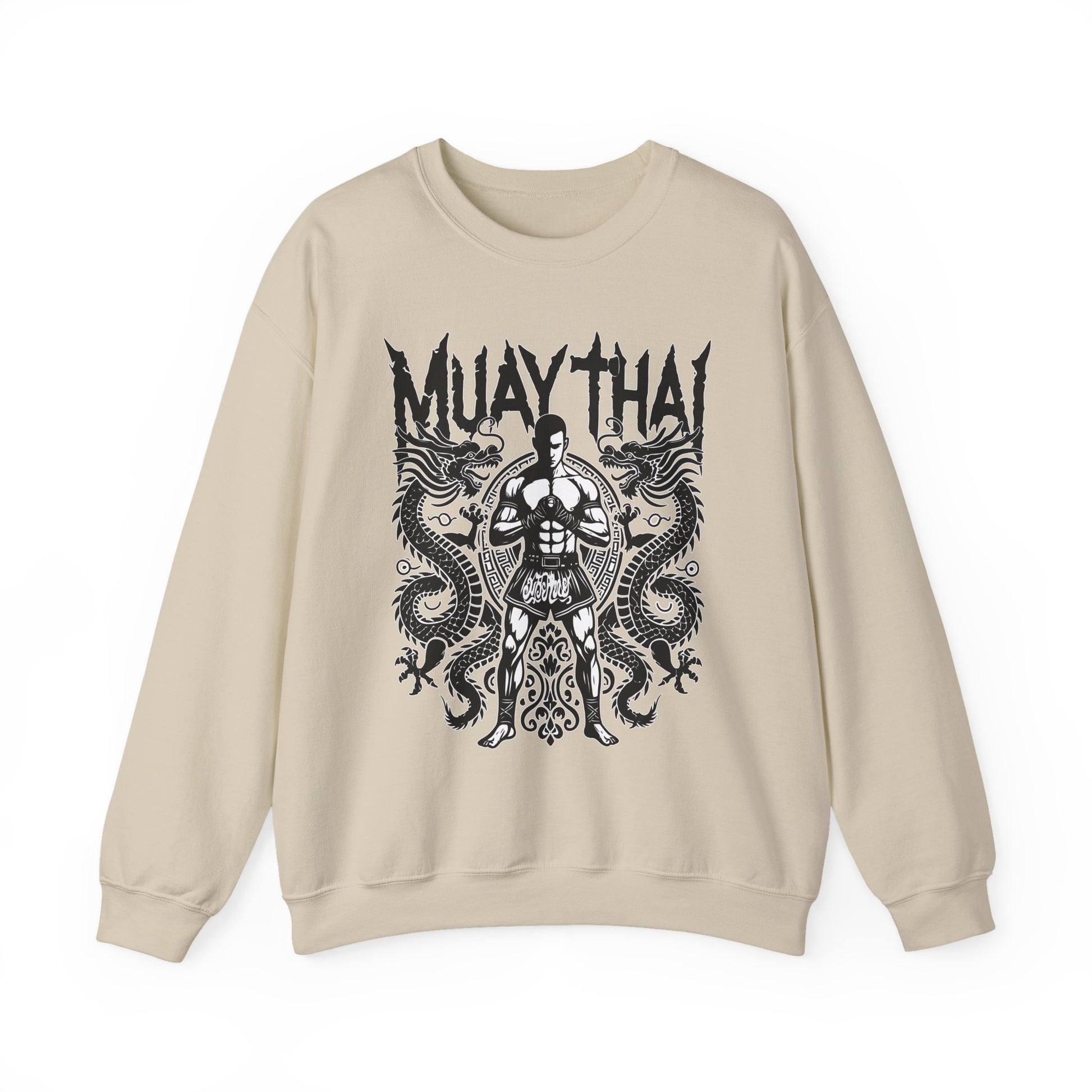 The Dragon Guard Muay Thai Sweatshirt embodies discipline, balance, and inner power — the true heart of Muay Thai. Featuring a centered fighter in a calm, focused stance, framed by two mythical Thai dragons, this design represents protection, strength, and respect for tradition. The bold black-and-white linework gives it a timeless, tattoo-inspired look that speaks to warriors who fight with both mind and body. This sweatshirt isn’t about noise — it’s about presence. Calm on the outside, lethal when tested.