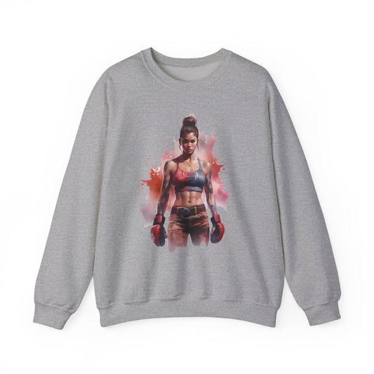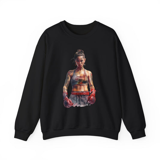 Muay Thai Woman Sweatshirt — Fierce Female Fighter Graphic Crewneck