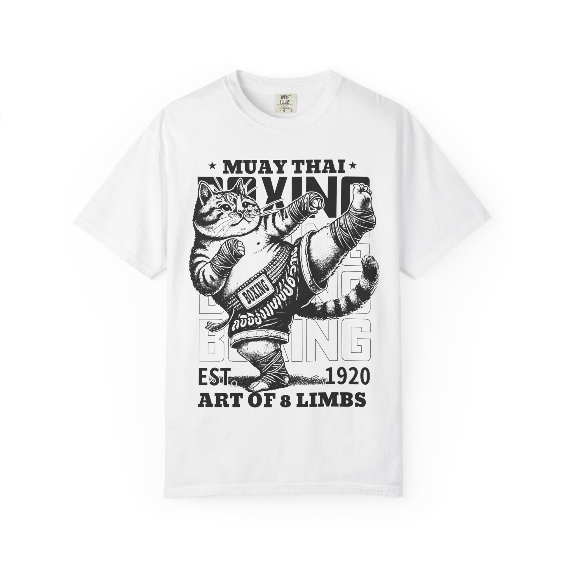 Minimal, high-contrast Muay Thai artwork that lets the movement speak. Bold, raw, and built for true fight culture.