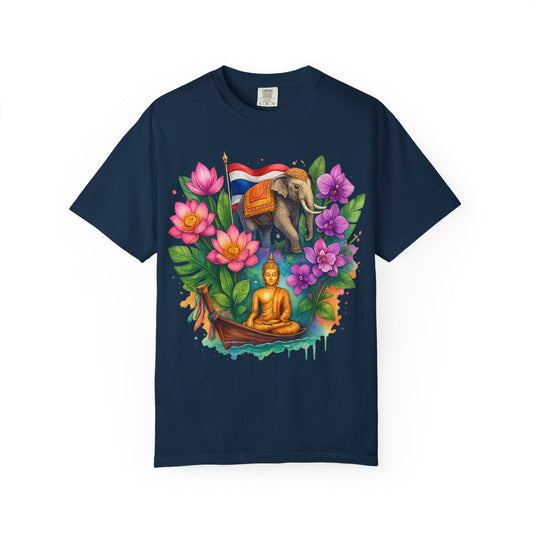 Thailand Spirit Elephant Lotus Buddha Art Graphic T-Shirt