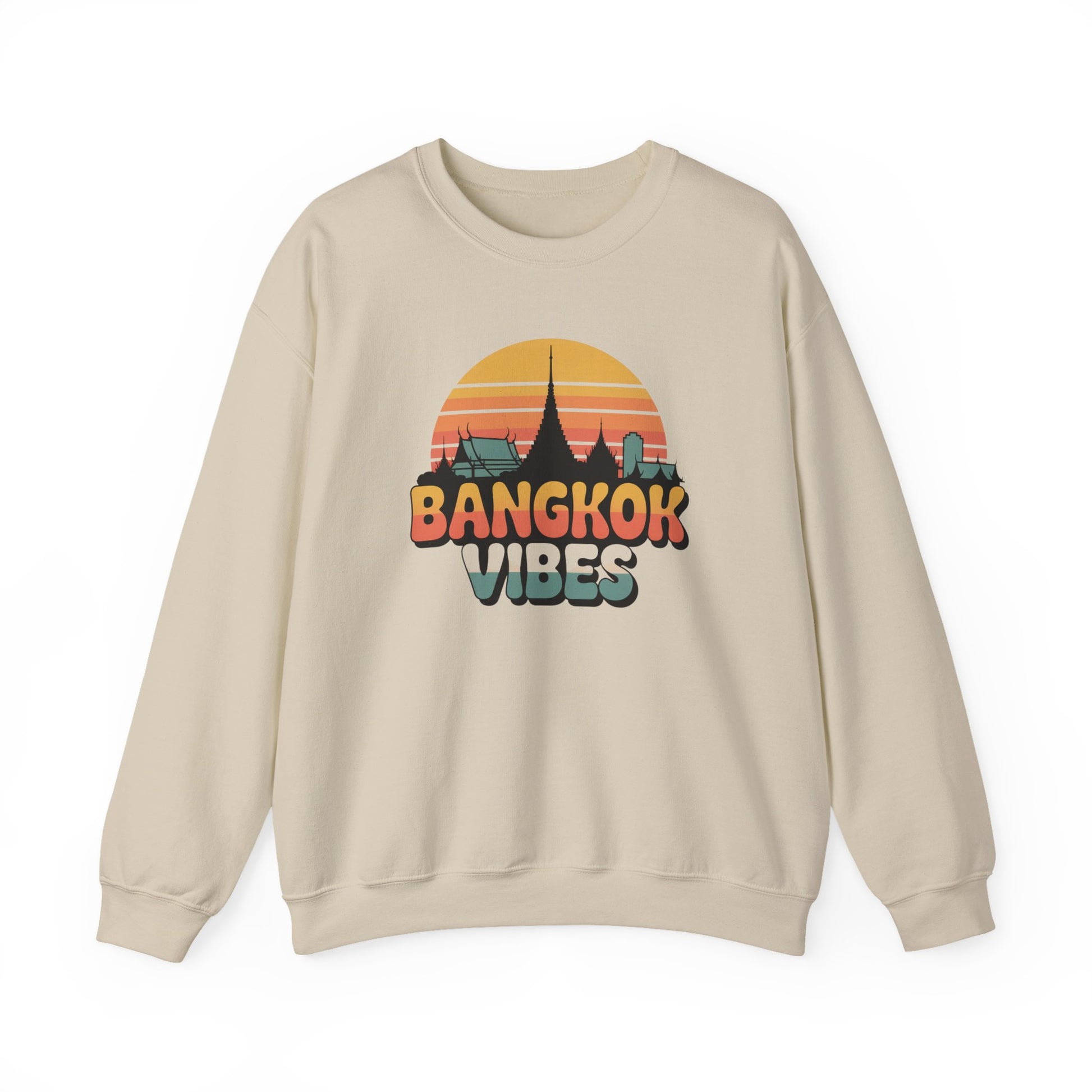 A soft, cozy crewneck inspired by the energy of Bangkok at golden hour. This medium-weight sweatshirt features a bold retro sunset graphic with temple silhouettes and warm layered tones that instantly set a laid-back travel mood. Designed with a clean, classic fit, it’s easy to wear for everyday comfort—whether you’re heading out, relaxing at home, or layering up on cooler evenings. Simple, expressive, and effortlessly stylish.